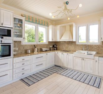 • Кухня: большой двухкамерный холодильник с питьевой водой и морозилкой, микроволновая печь, плита с духовкой, тостер, чайник, посудомоечная машина, стиральная машина с сушкой.