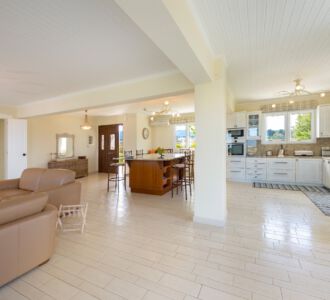 Вилла одноэтажная, максимальное размещение 9 – 10 человек. Территория всей усадьбы 4000 кв.м., отдельная зона барбекю, терраса с садом - 3500 кв.м.