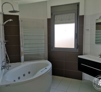 • Villa SV – 160 кв.м. (максимальное размещение 6 -7 взрослых). Состоит из двух уровней (этажей). 1 уровень: зал, гостиная с обеденной зоной, кухня (открытого плана), душевая с туалетной комнатой, спальня с двуспальной кроватью. 2 уровень (этаж): 2 спальные комнаты, одна с двуспальной кроватью и вторая с двумя односпальными, каждая с отдельным выходом на веранду, веранда 35 кв.м., ванная комната с джакузи,WC.