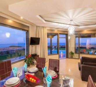 Комплекс вилл, состоящий из четырёх отдельных пентхаусов, расположен в курортном районе Лаханья, в 85 км от города Родоса и главного порта, и в 75 км от аэропорта Diagoras. От городка Линдос – 30 км. Виллы были построены в 2017 году и ежегодно частично реновируются. Комплекс находится непосредственно у береговой линии Геннади - Лаханья (мелкая галька), первая линия. С отдельным выходом к морю. Это один из единичных вариантов проживания на острове Родос, который имеет собственный пляж средиземного моря.